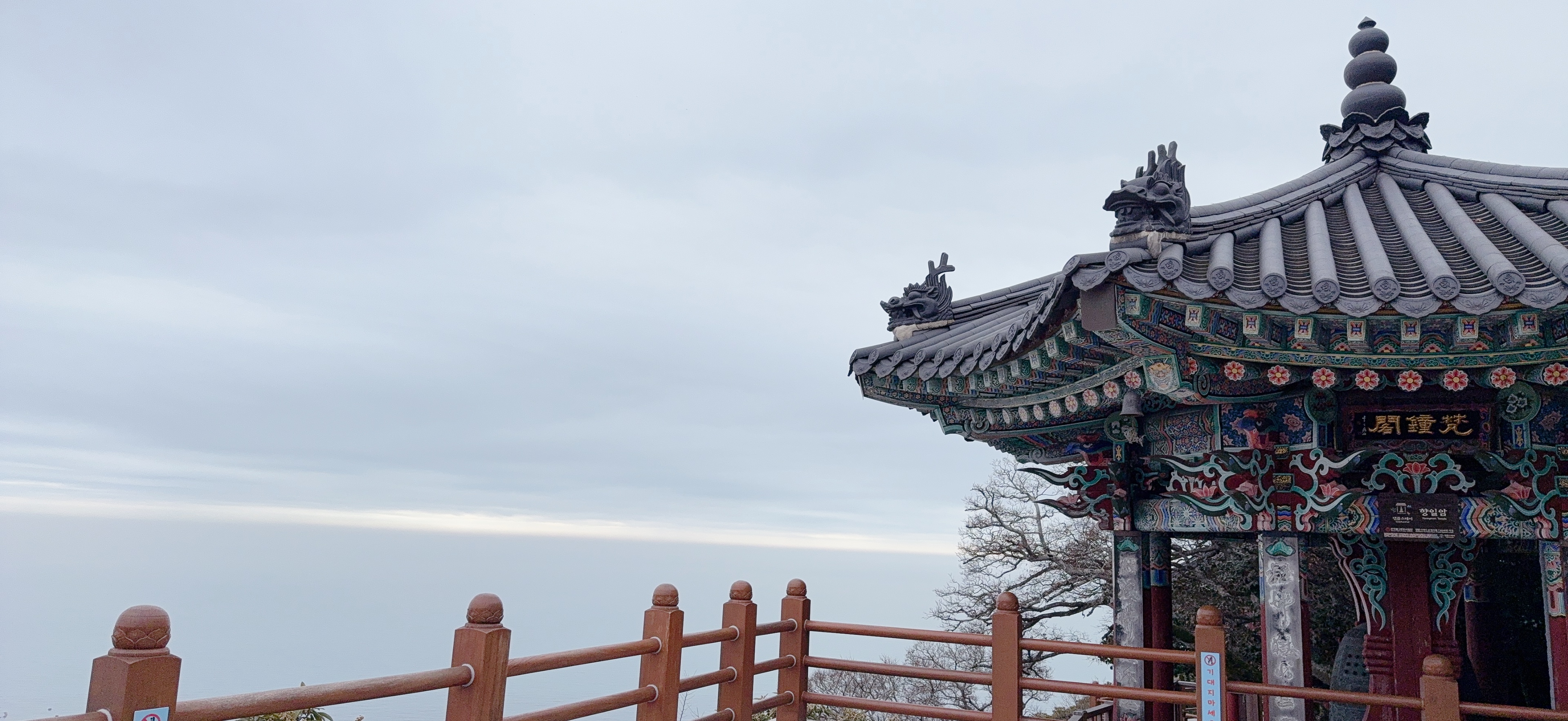 - 해안 절벽 위에 자리 잡은 아름다운 사찰 건축