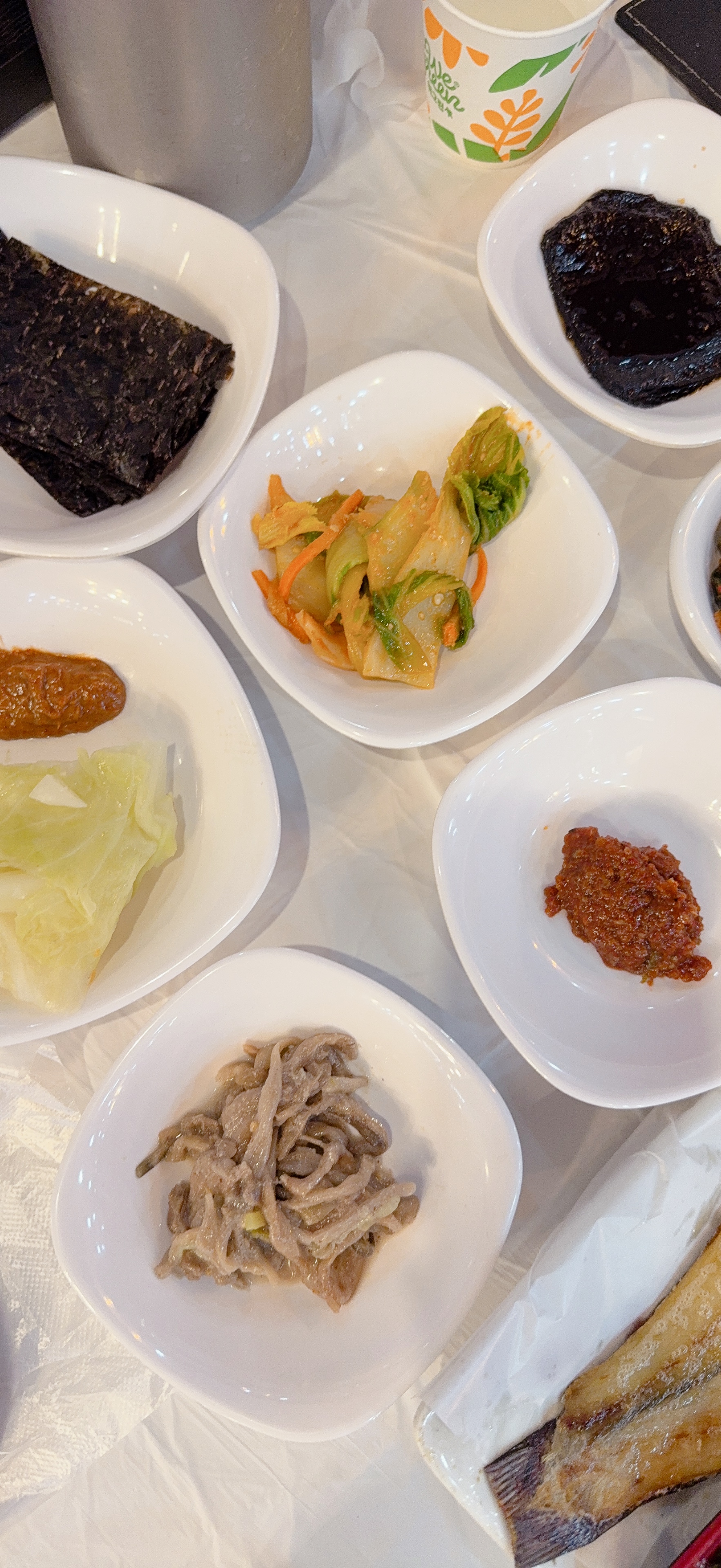 - 한 상 가득 차려지는 정갈한 반찬과 해산물 요리