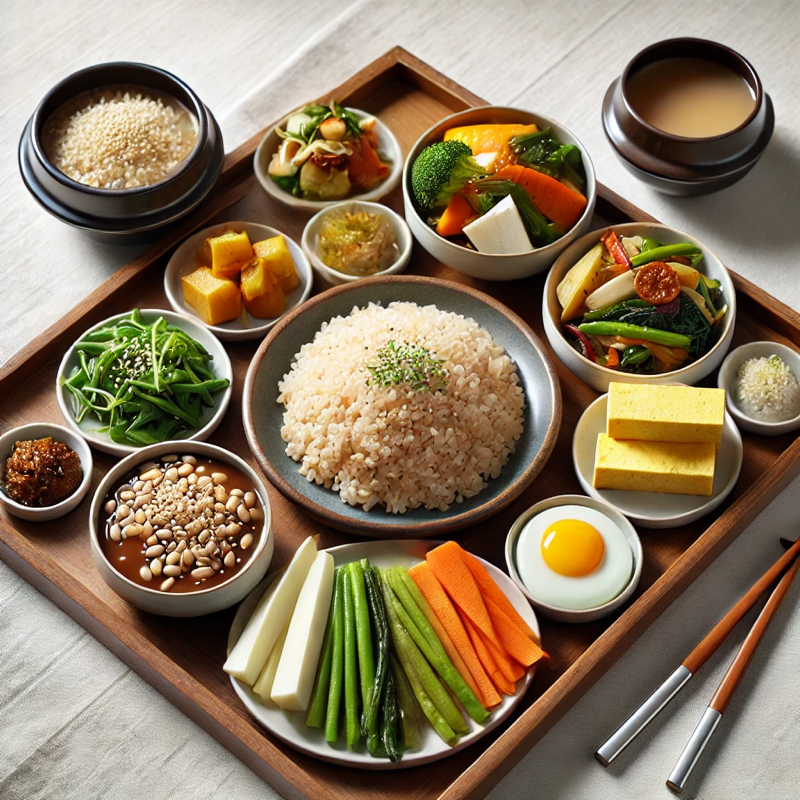 - 아침: 현미밥, 두부된장국, 나물 반찬, 계란찜
