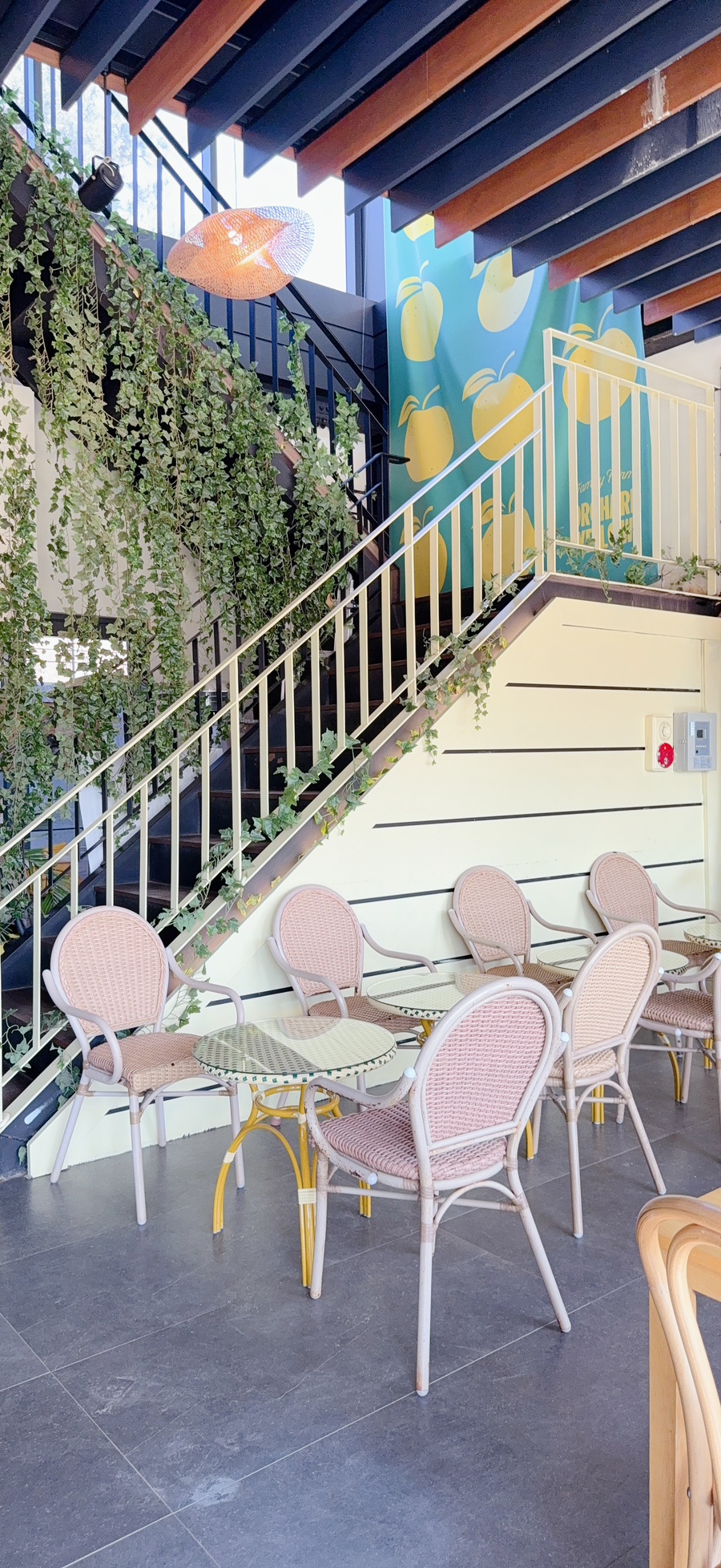 넓은 창으로 들어오는 햇살, 아기자기한 조명, 그리고 무엇보다도 은은하게 퍼지는 과일향이 참 인상적이었어요.